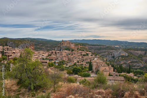 The medieval village of Alquezar, in the province of Huesca, with its clay roofs and its castle on the hilltop.