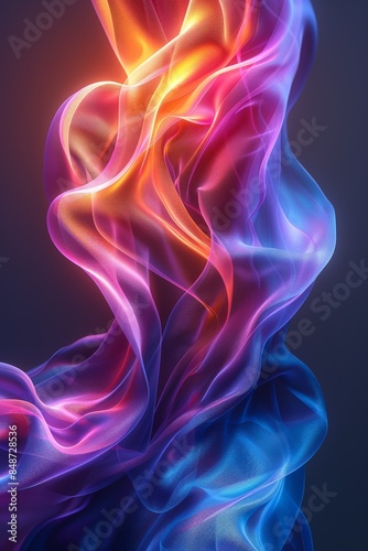 The mesmerizing flow of vibrant, colorful abstract waves resembling silk fabric with glowing neon highlights in a stunning blend of orange, pink, and blue huesabstract