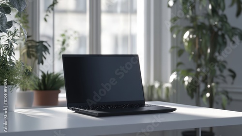 laptop, workspace, interior, plant, technology, minimalism, modern, desk, computer, office, design, home, furniture, light, greenery, bright, elegant, digital, device, contemporary, tidy, indoor, equipment, lifestyle, aesthetic, productivity, environment, calming, serene, sharpened, business
