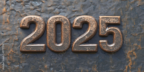 The numbers "2025" carved in stone, metallic and copper color texture, symbolizing the new year.
