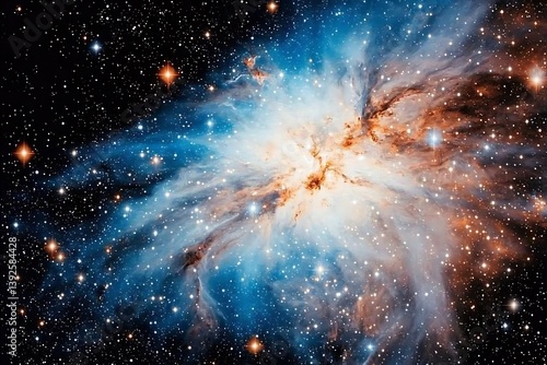 The orion nebula majestically illuminated with stars and colorful gas clouds in the night sky