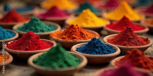 The Palette of Life s Experiences A Still Life of Colors and Textures A vibrant still life composition featuring small bowls filled with colorful natural pigments (ochre, indigo, crimson), alongside