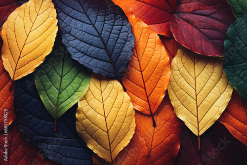 The pattern of colorful fallen leaves of autumn colors. Creative seasonal artistic idea of nature concept.