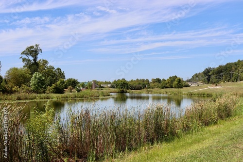 lake, water, sky, nature, landscape, blue, summer, tree, tree, green, cloud, duck pond, grass, cloud, view, natural, sun, park, rural, beautiful, outdoors, panorama, spring, season, season, seasonal, country, countryside, white, colours, colours, light, sunlight, sunny, peaceful, calm, quiet, background, background, day, daytime, outside