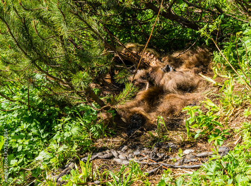brown bear, coat, mammal, remain, dead, skin, spine, bone, guts, entrails, bush, eaten, hair, selection, sick, decomposition, nature, environment, wild, animal, death, bearskin, bear, hairy, mountain, fauna, outdoors, forest, fur, wildlife, walking, fir, european, danger, killer, brown, deep, predator, ursus, green, brownie, beast, murdered