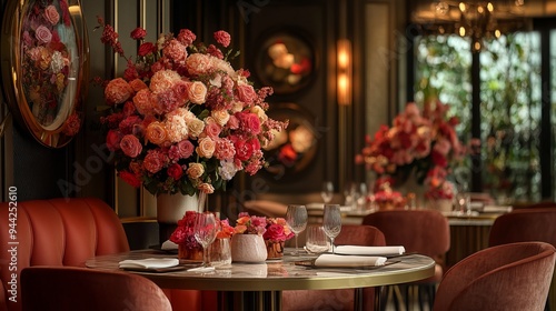 The restaurant boasts an inviting ambiance, complemented by a dedicated photo zone and exquisite floral arrangements, creating a visually captivating dining experience.