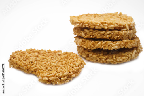 The Rice cracker or Khao tan is thai name pile up on white back