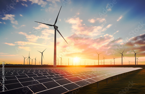 The Rise of Solar and Wind Energy Revolutionizing the Power Industry, solar panels and windmill ,wind turbine on the hill