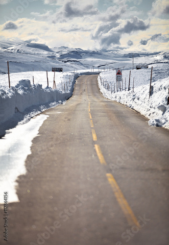 road, way, travelling, asphalt, snow, horizon, sky, cloud, signs, landmark, marker