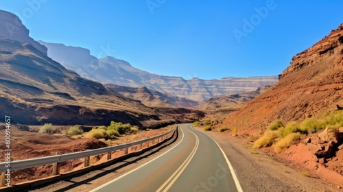 road, desert, highway, mountain, arid, dry, sparse, cactus, rock, sun, heat, travel, transportation, route, path, destination, journey, trip, adventure, exploration, nature, landscape, scenery, outdoors, wilderness, mesa, butte, canyon, gorge, vale, arroyo, laundered, draw, gully, ravine, wadi