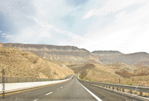 desert, rock, sand, street, road, america, american, scenic, us, sky, clear, nature, curve, guard rail, concrete, hill, mountain, curved, nobody, arizona, country road, summer, natural