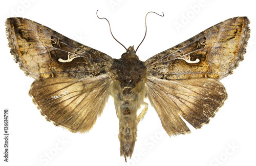 The Silver Y on white Background - Autographa gamma (Linnaeus, 1758)