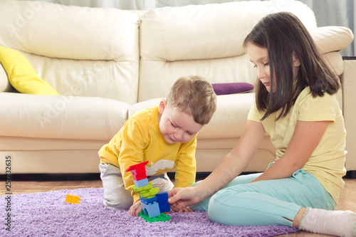 The sister of the offended brother. Senior and the younger child. Children's quarrels. Brother and sister playing together. the conflict between a boy and a girl. the kids are fighting