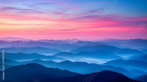 sky, dawn, horizon, pink, blue, mountain, misty, layer, design, background, cover, poster, banner, wallpaper, serene, gradient, hue, pastel, tranquil, nature, landscape, scenic, beauty, aethereal, soft, light, panorama, morning, silhouette, calm, inspirational, artistic, picturesque, sublime, atmospheric, peaceful, canvas, ambience, sunrise, early, glowing, majestic, elevation, texture, depth