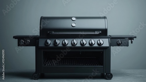 The sleek grilling station has eight burners and spacious side tables, ideal for outdoor cooking
