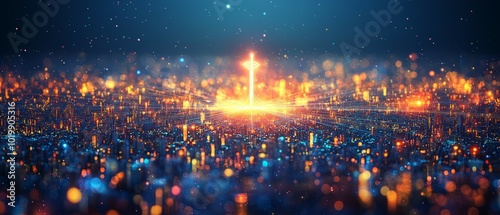 digital, connectivity, particle, speed, light, tower, landscape, abstract, glowing, line, city, user, technology, instant, network, pop, culture, vibrant, colours, massa, production, consumerism, iconic, imagery, art, illustration, panorama, wide, banner, title, horizontal, hero, background, desktop, wallpaper