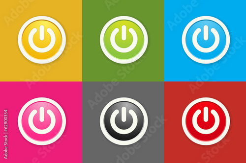 buttons, icon, standby, power, switch, symbol, start, glossy, off, design, element, interface, press, stop, app, pictogram, yellow, graphic, background, green, circle, isolated, blue, control, signs, illustration, pink, electricity, technology, black, web, energy, round, red, push, cyberspace, online, supply, on, stroke, shadow, white, load, gradient