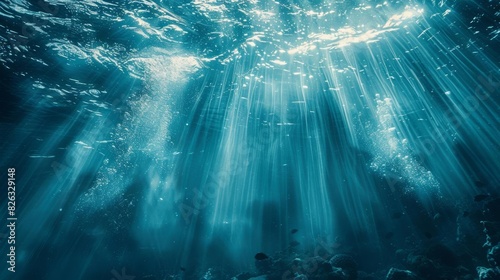 The sun's rays pierce through the water's surface, illuminating the depths below.