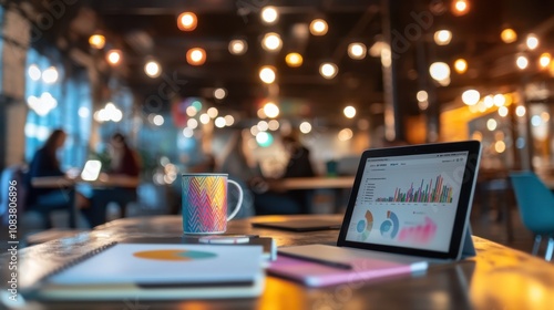 workspace, tablet, graph, hot drink, notebook, colourful, office, datum, technology, modern, business, statistic, casual attire, creative, productivity, blurred, light, urban, cafes, laptop, document, teamwork, chart, education, contemporary, design, meeting, lifestyle, sharpened
