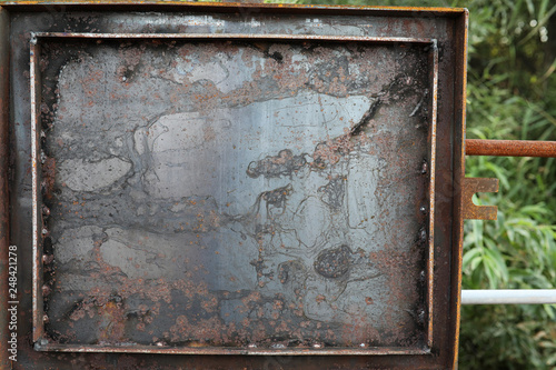 The texture is metallic. Industrial background from an old rusty metal. Textured metal background with rust and cracks.