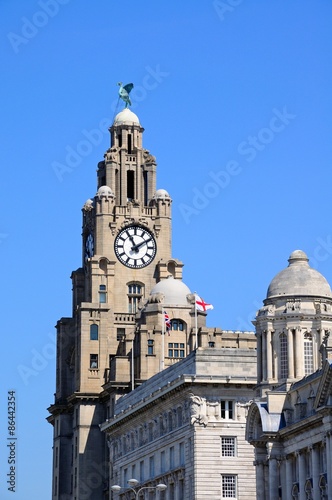 sunny, sunlit, clock-tower, dome, liver, landmark, building, architecture, england, britain, europa, european, western europe