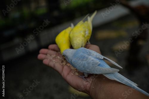 The tiny, adorable Budgerigar bird is very cute and easy to tame with humans.