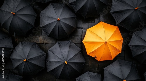 The top view is an orange umbrella on a black umbrella. National Umbrella Day