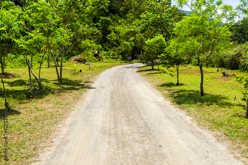 The trail through the green forest in the mountain of Pingtung, Taiwan.