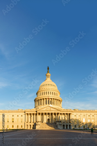 The United States Capitol in the morning with sunrise blue sky, Washington DC, Us capitol building