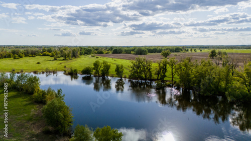 river, landscape, water, nature, grass, green, sky, lake, countryside, summer, tree, cloud, russia, travel, forest, spring, tree, field, view, stream, meadow, europa, panorama, aerial, agriculture, beautiful, blue skies, calm, colourful, environment, field, from above, horizon, lakeshore