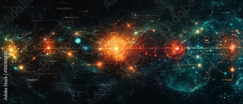 user, journey, path, node, feedback, interface, glowing, action, choice, design, flow, illuminated, connection, interaction, expressive, ambiguous, experimental, abstraction, abstract, art, illustration, panorama, wide, banner, title, landscape, horizontal, hero, background, desktop, wallpaper