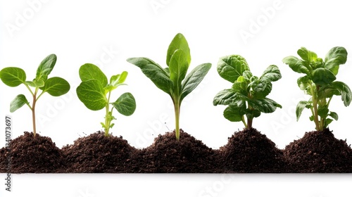 The vibrant image showcases a row of green seedlings thriving in mounds of rich soil, encapsulating the beauty and potential of new plant life in a garden setting.