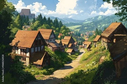 The Village in Anime Illustration