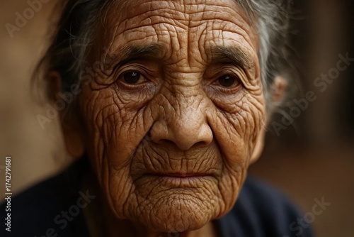 The weathered face of a woman who has seen it all