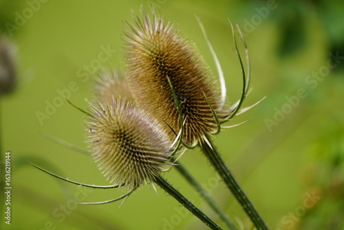 The wild teasel (Dipsacus fullonum L., synonym: Dipsacus sylvestris Huds.) is a plant species that belongs to the subfamily Dipsacoideae. Hanover Leinewiesen, Germany,