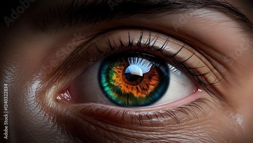 human eye, closeup, iris, green, orange, yellow, city landscape, blue skies, eyelash, natural beauty, realism, eye, beauty, macro, woman, eye, blue, face, pupil, look, vision, view, closeup, eyelash, eyeball, looking, people, skin, human, eyebrow, colours, make-up, see
