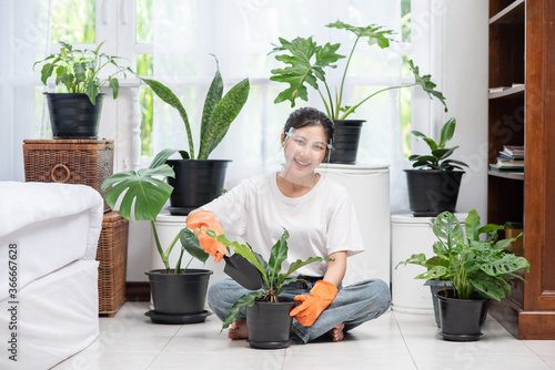 garden, home, flower, green, woman, care, plant, girl, growing, people, summer, house, spring, fresh, nature, pretty, pot, young, gardening, hobby, adorable, gardener, natural, beautiful, happy, caucasian, wall, environment, room, comfort