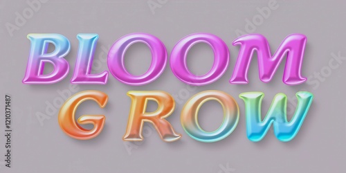 The word bloom is written in a colorful font. The font is made of different colors, giving it a vibrant and lively appearance. The word bloom is surrounded by a purple and pink background