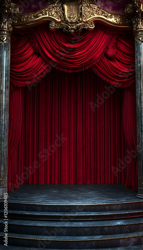 Theater Stage Framed by Luxurious Red Velvet Curtains AI Generated