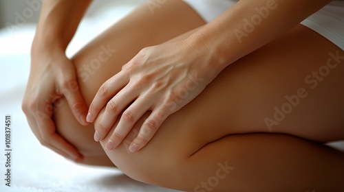 Therapist massaging a client legs to relieve pain and improve circulation in a modern therapy center