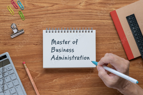 There is notebook with the word Master of Business Administration. It is as an eye-catching image.