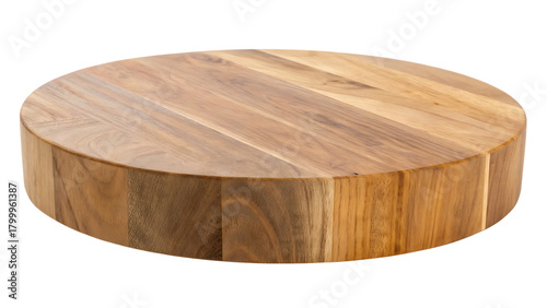 Thick round wooden butcher block for product display cut out on PNG. AI GENERATED.