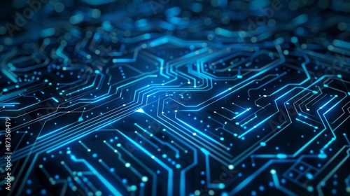 Thin circuit tracing lines in blue on a dark technology background generative ai