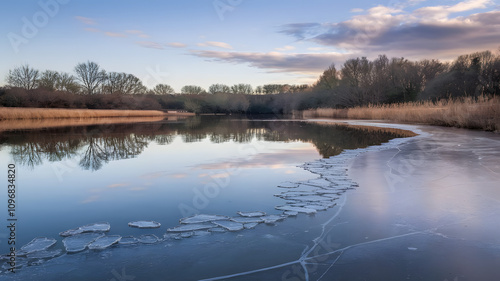 thin, ice, edge, calm, duck pond, winter, outdoors, nature, glacé, chilly, frost, peaceful, cold, icy, winter scene, delicate, serene, frosty, cold weather, wintery, stillness