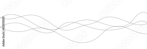 Thin wavy line abstract background. Wavy line horizontal divider outline minimalist background. Abstract black lines wave curve motion on white background. Vector Illustration.