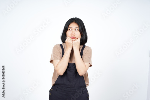 Thinking and Curious gesture Of Beautiful Asian Woman Isolated On White Background