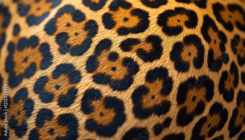 This captivating image showcases the intricate and mesmerizing patterns of a leopards fur, highlighting the rich golden tones and bold black spots. The unique floral-like shapes create a stunning