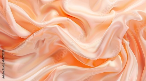 This image features a close-up of smooth, flowing peach-colored satin fabric with soft, elegant folds, perfect for backgrounds, design, and fashion projects.