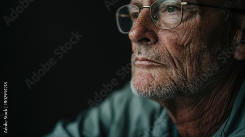 This image reveals a person wearing glasses, capturing a moment of focused intent and contemplation, with fine details highlighting the facial features and thoughtful expression.