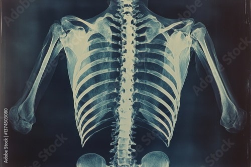 This photo shows an xray image revealing the skeletal structure of the back including the vertebrae ribs and pelvis Full view of the ribcage in Xray .